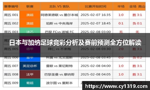 本文将对日本与加纳足球竞彩进行全方位的分析与赛前预测,旨在为球迷和购彩者提供有价值的信息。首先,我们将从两队的历史交锋记录、近期状态、球队阵容及战术分析以及赔率变化等四个方面进行深入探讨。通过这样的分析,我们希望能够揭示比赛中可能出现的关键因素,帮助大家更好地理解这场比赛的走势和结果。此外,还会结合双方的特点,给出一些实用的投注建议,以期提高竞彩成功率。无论是对于球迷还是投资者,这篇文章都将是一个全面而详细的参考资料。